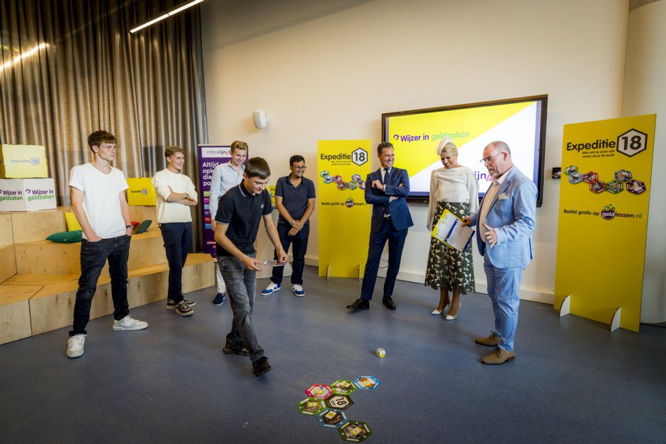 Jacqueline Gorissen, projectleider van de werkgroep: “Het was een mooi gesprek met de koningin. Geweldig dat ze zich zo inzet en tijd vrijmaakt om jongeren bewust te maken hoe om te gaan met geld en hun financiële verantwoordelijkheden. Wij vinden het ook heel belangrijk om onze studenten goed voor te lichten. Dat proberen we ook op een leuke manier te doen, zoals tijdens de Week van het geld, waar de studenten workshops en gastlessen kunnen volgen, spellen kunnen spelen, vragen kunnen stellen aan experts. We hebben zeker de ambitie om Expeditie 18 te integreren in ons lesprogramma. De studenten hadden veel plezier en lol bij het spelen ervan.”