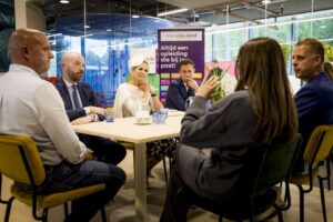 Aansluitend gingen studenten, docenten, onderzoekers, werkveld en bestuurders met elkaar in gesprek over drie thema’s: de meerwaarde van onderzoek en innovatie voor onderwijs en arbeidsmarkt, de samenwerking tussen mbo, hbo, wo en het werkveld en de bestuurlijke visie en de aansluiting op landelijke ontwikkelingen.