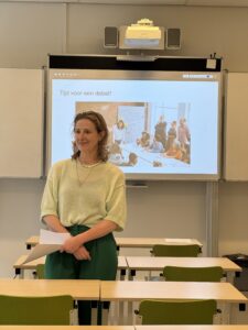 Wethouder Veltman ging in haar gastles in op haar portefeuille Economie, Kennis, Sport en Gezondheid en legde uit hoe besluiten binnen de gemeente tot stand komen. Ze liet zien hoe jongeren zelf kunnen meedoen aan de lokale democratie, bijvoorbeeld via de Jongerenraad of de Studentenraad op school. Ook besprak ze actuele Leidse projecten zoals het Sportcomplex 1574 en het Leiden Bio Science Park. De les eindigde met een debatoefening, waarbij studenten een thema kozen en een standpunt moesten innemen.